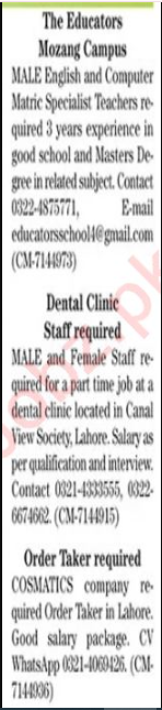 Vacancy Description: Attention students! Are you on the lookout for job opportunities at Latest Teaching Staff At Private School Jobs Lahore 2024? Well, you’ve landed in the perfect spot! We’re thrilled to announce a recent job opening advertised in the Jang Jobs Newspaper. Now, here’s the scoop: we’re searching for these vacancies Biology Teacher, Home … Read more